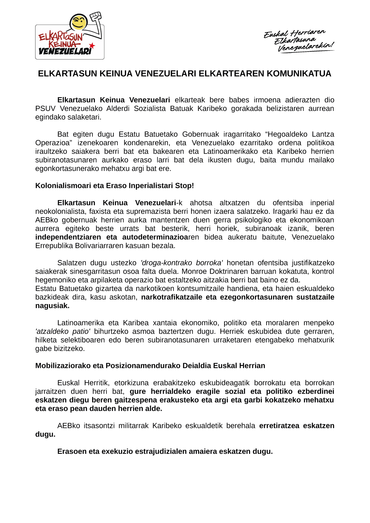 Venezuelarekiko adiskidetasun- eta elkartasun-erakunde gisa, ezin dugu alde batera utzi Kuba jasaten ari den egoera, elkarrekin erresistentziaren eta adiskidetasun hautsezinaren historia baitago.